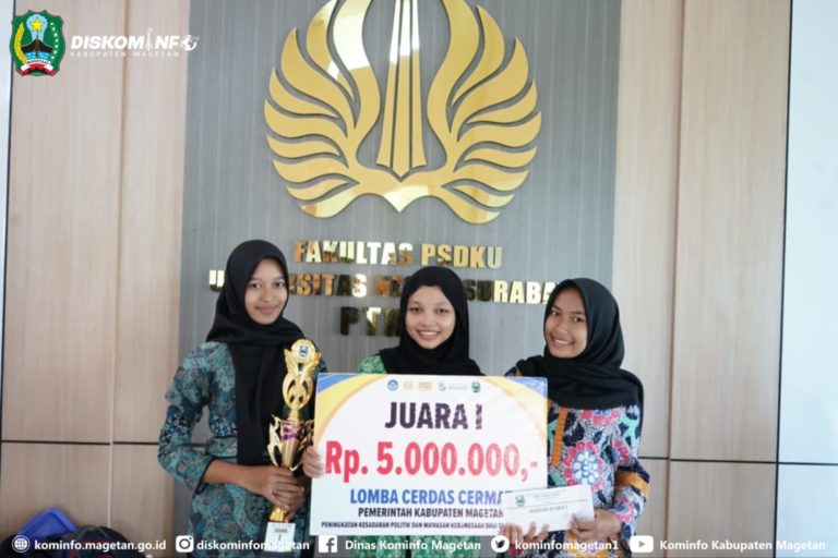 Tim SMAN 1 Magetan berhasil keluar sebagai juara Lomba Cerdas Cermat (LCC) Kesadaran Politik dan Wawasan Kebangsaan yang digelar oleh Bakesbangpol Kabupaten Magetan bekerjasama dengan Unesa Kampus 5 Magetan, Minggu ...