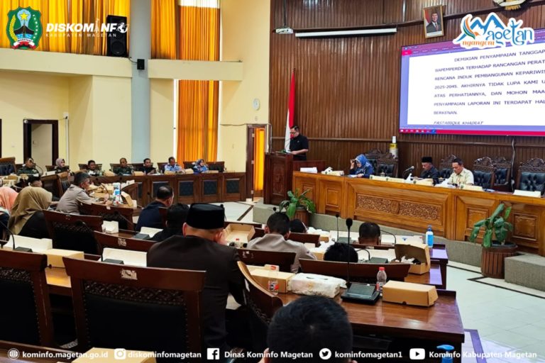 Tanggapan dan atau Jawaban Badan Pembentukan Peraturan Daerah Dewan Perwakilan Rakyat Daerah Kabupaten Magetan Terhadap Rancangan Peraturan Daerah tentang Pembangunan Kepariwisataan Kabupaten Magetan Tahun 2025-2045 disampaikan dalam Rapat Paripurna DPRD ...