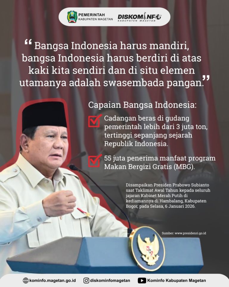 Presiden Prabowo Subianto mengapresiasi kinerja Pemerintah Indonesia dalam berbagai hal. Salah satunya strategi transformasi bangsa yaitu swasembada pangan. ”Tidak ada bangsa yang merdeka bilamana bangsa itu tidak bisa menjamin makan ...