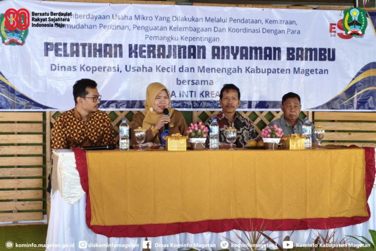 Dinas Koperasi Usaha Kecil dan Menengah Kabupaten Magetan gandeng CV Esa Inti Kreatif laksanakan pelatihan Kerajinan Anyaman Bambu. Pelatihan digelar selama dua hari yakni pada 25-26 Agustus bertempat di Joglo ...