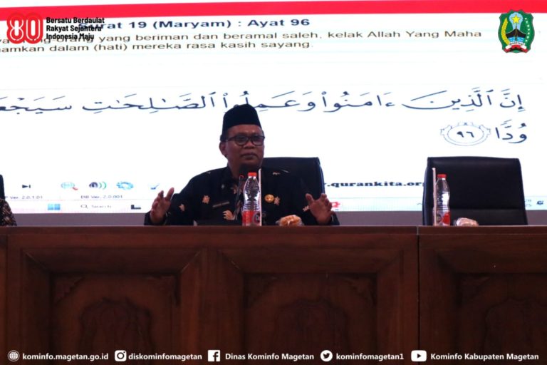 Dalam pengajian rutin “Kamis Kliwon Ngresiki Ati” yang digelar Pemkab Magetan pada Kamis (21/8/2025), Ustadz yang juga menjabat sebagai Pj. Sekda Kabupaten Magetan, Muhtar Wakid, menyampaikan tausiyah bertema “Cinta Tanah ...