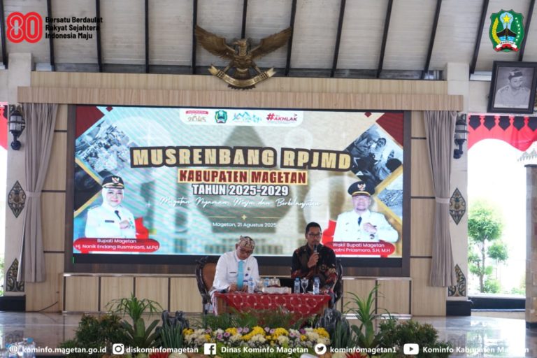 Pemerintah Kabupaten (Pemkab) Magetan gelar Musyawarah Perencanaan Pembangunan (Musrenbang) Rencana Pembangunan Jangka Menengah Daerah (RPJMD) Tahun 2025–2029 di Pendopo Surya Graha, Kamis (21/8/2025). Kegiatan ini menjadi forum strategis untuk membahas ...