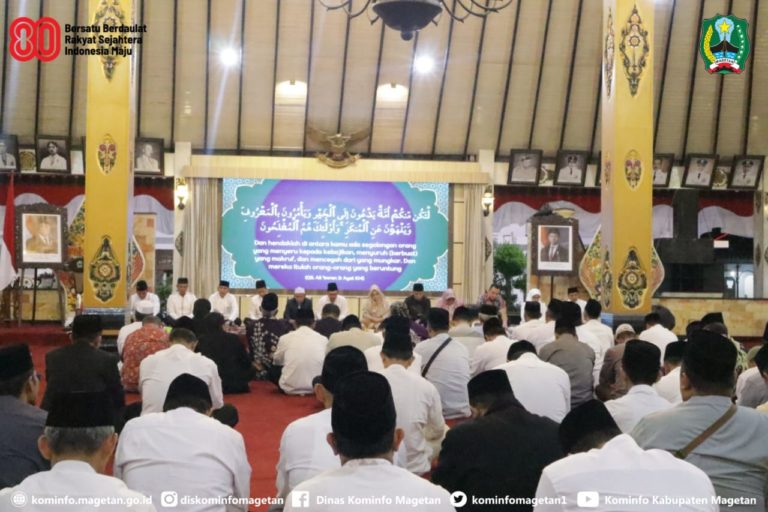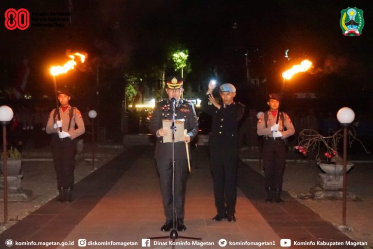 Suasana khidmat dan penuh kebersamaan warnai Malam Tirakatan dalam rangka Peringatan Hari Ulang Tahun (HUT) ke-80 Kemerdekaan Republik Indonesia yang digelar Pemerintah Kabupaten Magetan di Pendopo Surya Graha, Sabtu (16/8/2025) ...