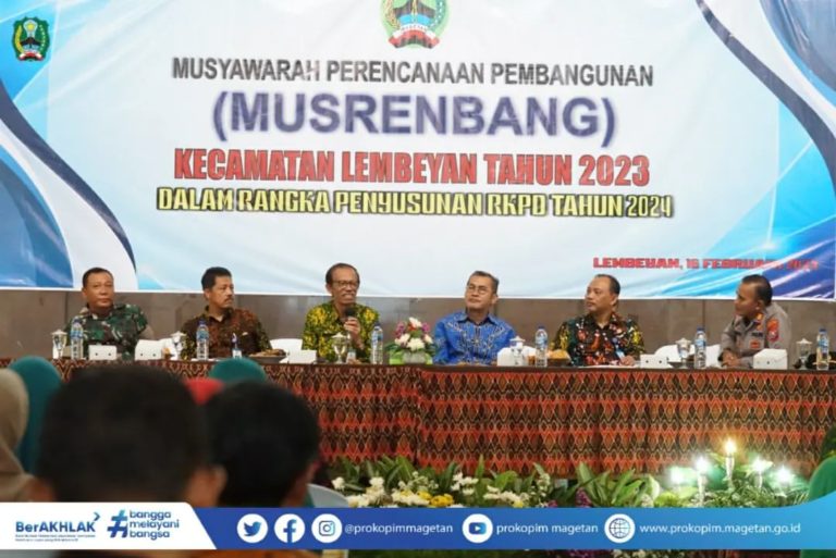 Bupati Suprawoto : Rencanakan Pembangunan Dengan Berpikir Visioner Sahabat Prokopim. Hal tersebut diungkapkan Bupati Magetan Suprawoto saat hadir pada Musrenbang Kecamatan Lembeyan dalam rangka penyusunan RKPD Kabupaten Magetan Tahun 2024 ...