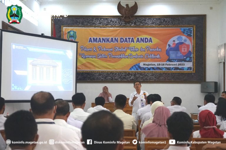 Pentingnya Keamanan Informasi, Kominfo Magetan Sosialisasi SOP Keamanan SPBE Perkembangan teknologi informasi dan komunikasi dalam bermasyarakat memberikan peluang bagi pemerintah untuk melakukan inovasi pembangunan aparatur negara melalui penerapan Sistem Pemerintahan ...