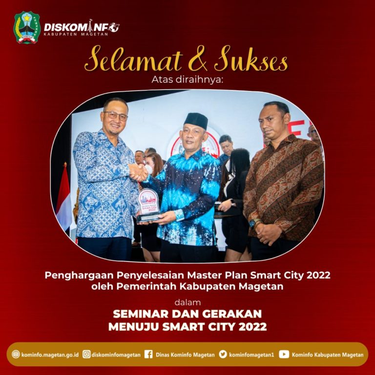 Pemkab Magetan Terima Penghargaan Penyelesaian Master plan Smart City 2022 #SobatKom, Kabar baik datang dari Pemkab Magetan. Hadir dalam seminar dan pameran gerakan menuju Smart City 2022, Pemerintah Kabupaten Magetan ...