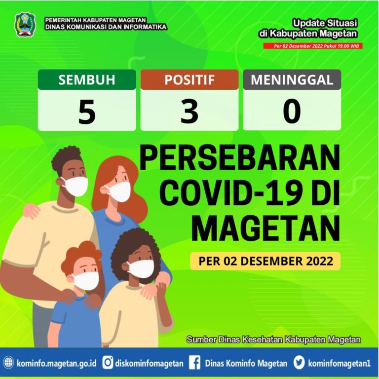 Update Peta Sebaran COVID-19 Per 02 Desember 2022 Pukul 19.00 WIB Berdasarkan data yang dihimpun dari Dinas Kesehatan Kabupaten Magetan, pasien sembuh COVID-19 pada Jumat (02/12) ada 5 orang. Sedangkan ...