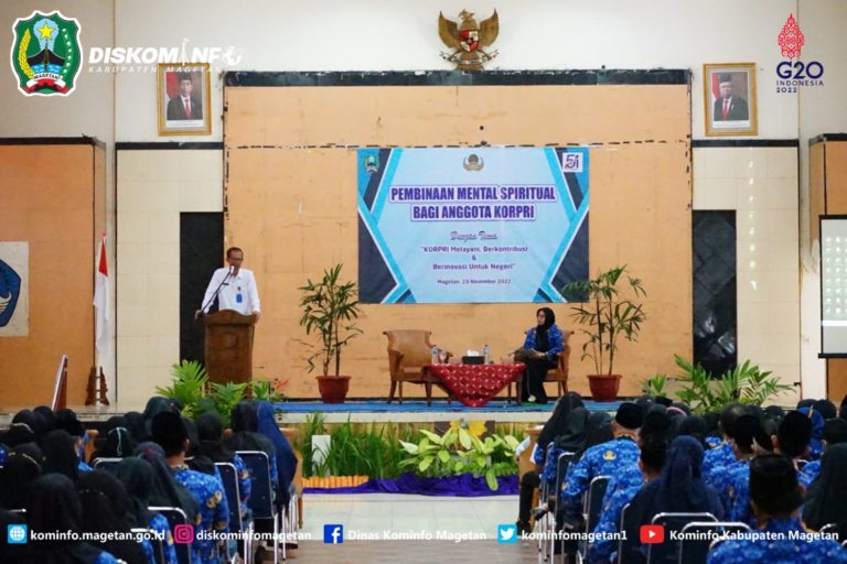 Korpri Melayani, Berkontribusi, dan Berinovasi untuk Negeri Jelang HUT ke-51 KORPRI, Pemerintah Kabupaten Magetan adakan pembinaan mental spiritual bagi anggota KORPRI. Bertajuk KORPRI melayani, berkontribusi, dan berinovasi untuk negeri acara ...