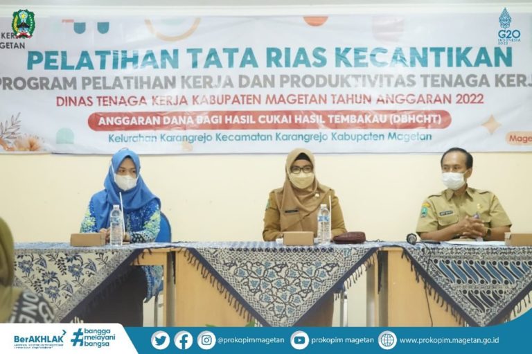 Wabup Magetan Buka Pelatihan Tata Rias Kecantikan Sahabat Prokopim, Pemerintah Kabupaten Magetan melalui Dinas Tenaga Kerja dengan bersumber anggaran dana bagi hasil cukai hasil tembakau (DBHCHT) menyelenggarakan pelatihan tata rias ...