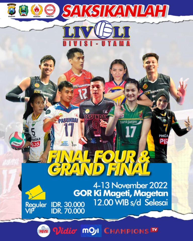 Catat! 4-13 November, GOR Ki Mageti Magetan Tuan Rumah Livoli 2022 MAGETAN - Setelah Banyuwangi dan Solo, Magetan dipercaya sebagai tuan rumah gelaran Liga Bola Voli Indonesia (Livoli) 2022. GOR ...