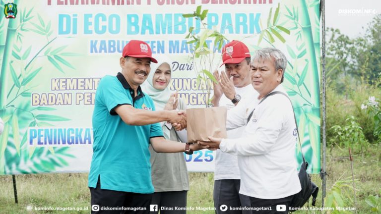 Kegiatan penanaman pohon bersama di Eco Bamboo Park, Selasa (30/9/2025), turut dihadiri oleh Asisten Perekonomian dan Pembangunan Setdakab Magetan, Winarto, Kepala Dinas Lingkungan Hidup dan Pangan Kabupaten Magetan, serta seluruh ...