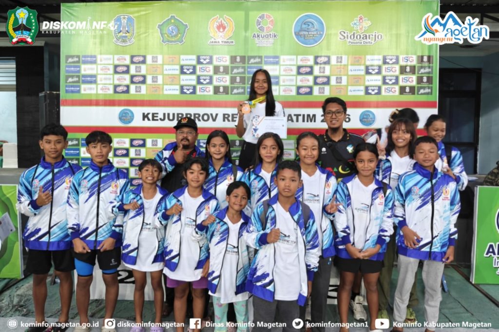 Kontingen renang Kabupaten Magetan berhasil membawa pulang medali dari ajang bergengsi Kejuaraan Daerah (Kejurda) Renang Tingkat Provinsi Jawa Timur yang digelar di Sidoarjo baru-baru ini. Prestasi tersebut diraih oleh Dayang Ayu Marimbi yang sukses mengamankan posisi ketiga.