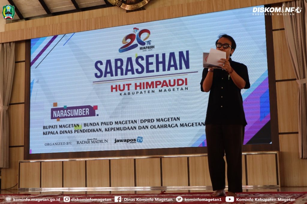 Momentum peringatan Hari Ulang Tahun (HUT) ke-20 Himpunan Pendidik dan Tenaga Kependidikan Anak Usia Dini (HIMPAUDI) Kabupaten Magetan hari ini digelar di Pendopo Surya Graha. Rabu (1/10/25). Menghadirkan momen spesial. Salah satunya adalah pelatihan public speaking yang diberikan oleh Host/Presenter dari Jawa Pos Radar Madiun , Tory Andromeda, khusus bagi para Bunda PAUD.