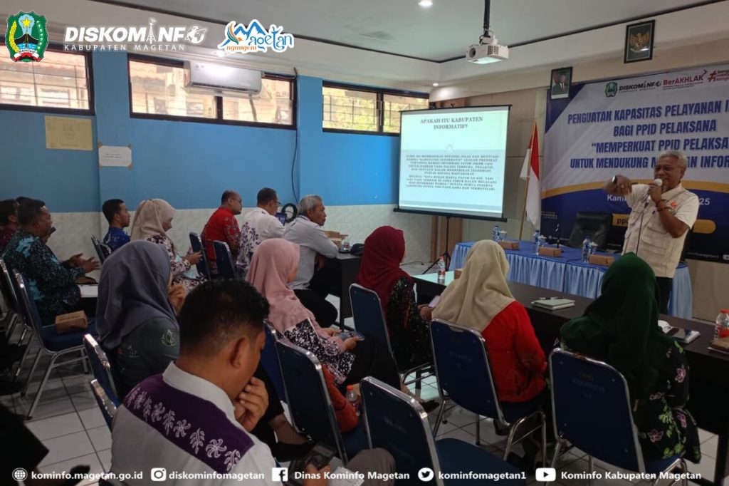PPID Utama Kabupaten Magetan menyelenggarakan Penguatan Kapasitas Pelayanan Informasi bagi PPID Pelaksana bertema “Memperkuat PPID Pelaksana Untuk Mendukung Magetan Informatif” pada Kamis (04/12/25) di Ruang Rapat Kolaborasi Diskominfo Magetan.Kegiatan ini diikuti PPID Pelaksana dari OPD dan kecamatan sebagai upaya meningkatkan profesionalitas dalam pelayanan informasi publik.