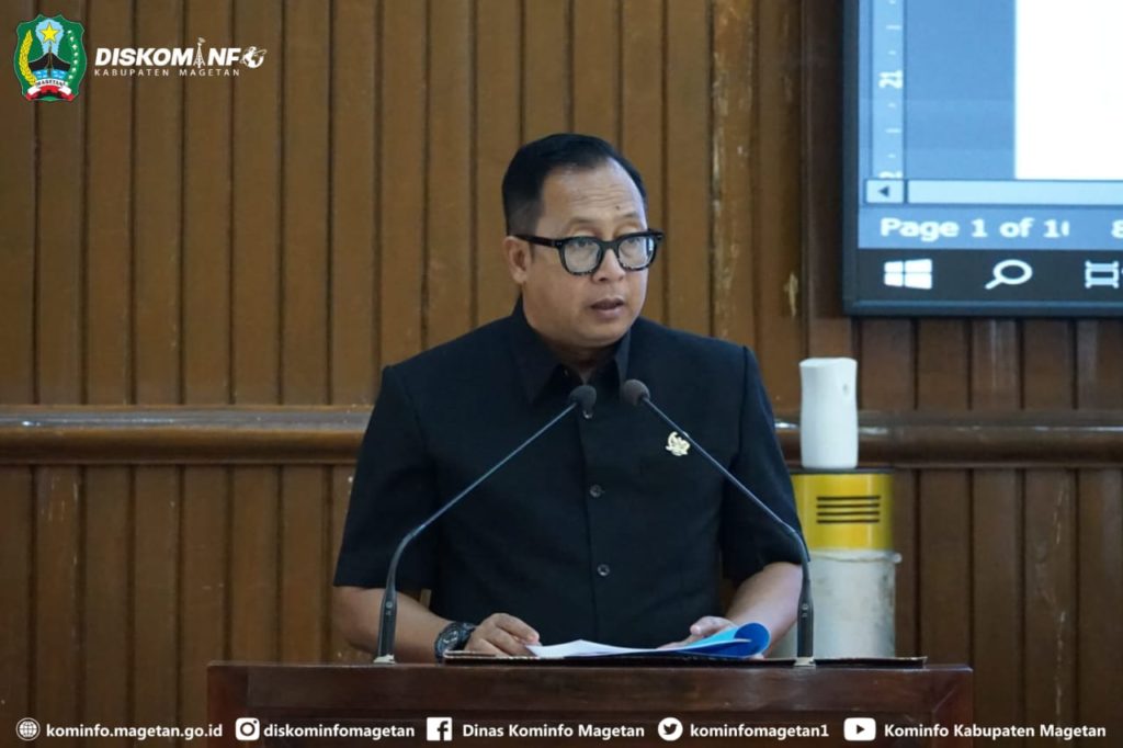 Ketua Badan Pembentukan Peraturan Daerah (Bapemperda) DPRD Kabupaten Magetan, Dwi Aryanto, SE menyampaikan penjelasan mengenai Propemperda Tahun 2026.