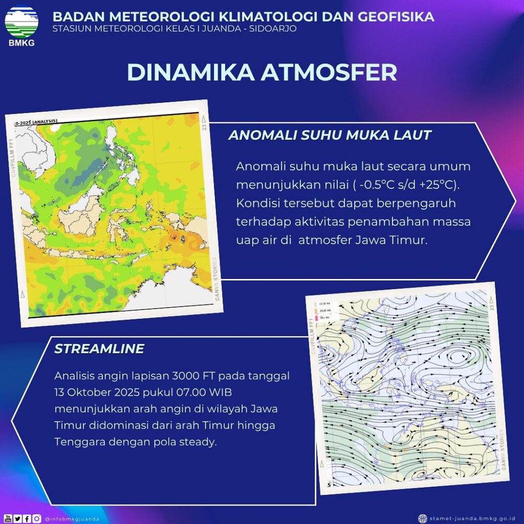 Selain faktor lokal, pengaruh fenomena atmosfer seperti Madden Julian Oscillation (MJO), gelombang Rossby, dan Kelvin turut meningkatkan pertumbuhan awan hujan dalam waktu singkat. Kombinasi faktor lokal dan global ini menjadikan cuaca di Jawa Timur lebih dinamis dan berpotensi ekstrem.