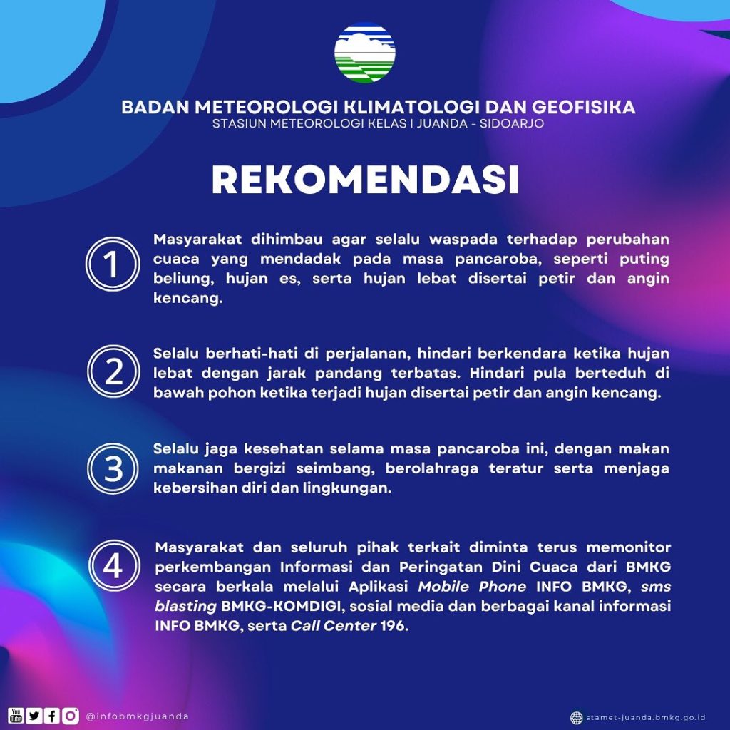 Referensi: @infobmkgjuanda | https://rri.co.id/surabaya/daerah/1897915/bmkg-imbau-warga-jatim-waspadai-cuaca-ekstrem-pancaroba