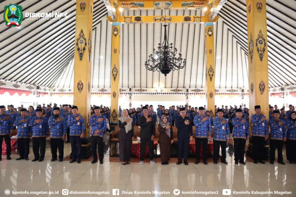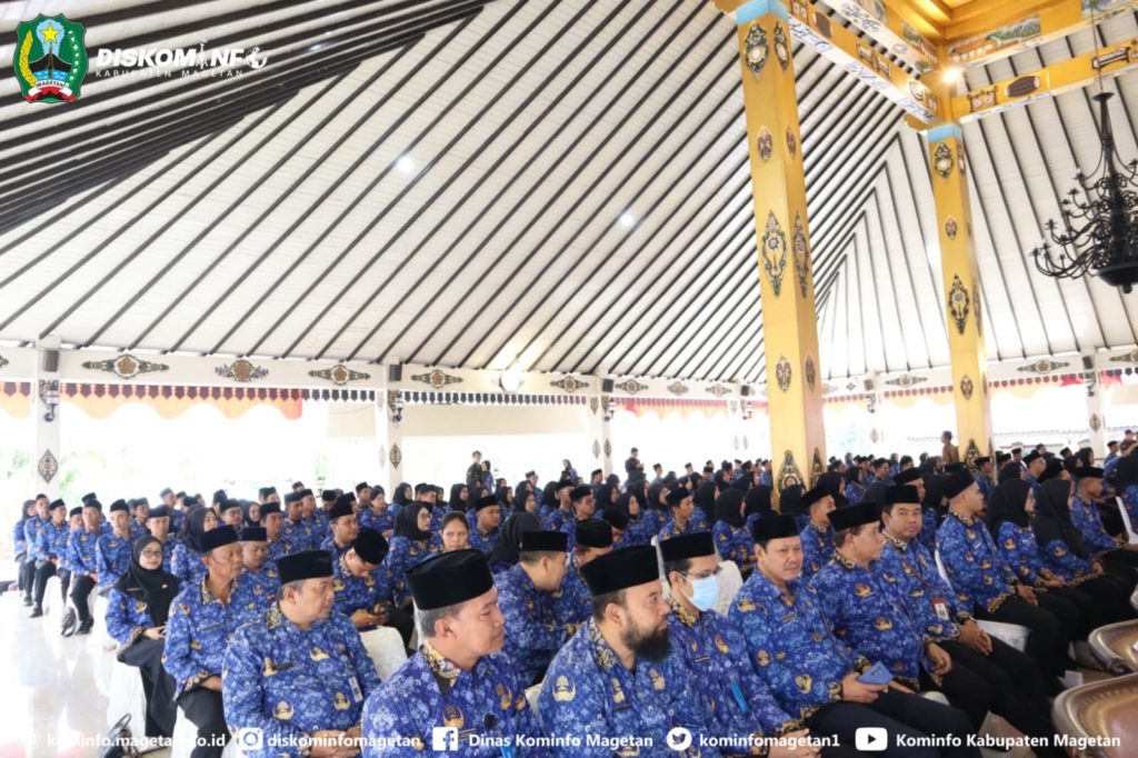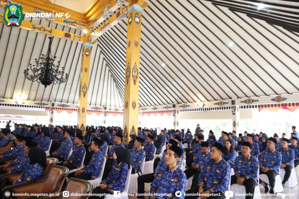 Dalam sambutannya, Bupati Magetan, Hj. Nanik Sumantri mengucapkan selamat datang kepada para CPNS dan PPPK yang baru bergabung. Ia menegaskan bahwa pengangkatan ini merupakan momentum penting untuk meningkatkan rasa syukur sekaligus komitmen dalam mengemban amanah dan tugas sebagai ASN.