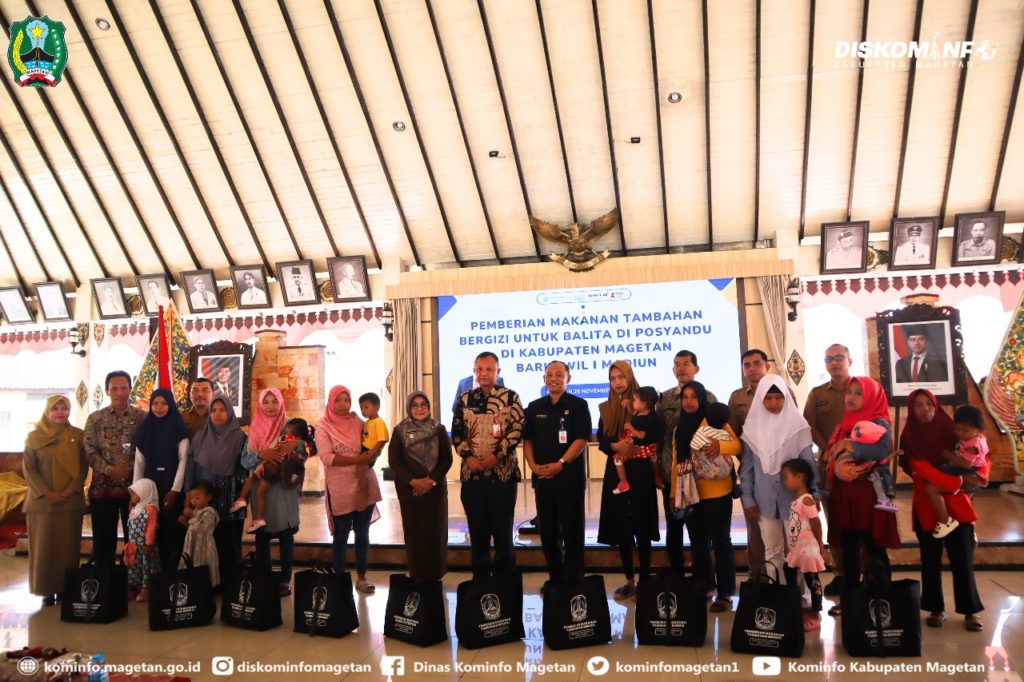 Pemerintah Kabupaten Magetan hari ini menerima dukungan Pemberian Makanan Tambahan (PMT) Bergizi untuk Balita Posyandu dari Pemerintah Provinsi Jawa Timur. Kegiatan tersebut dilaksanakan di Pendopo Surya Graha Magetan, Selasa (25/11/25), sebagai upaya memperkuat program perbaikan gizi dan pencegahan stunting di daerah.