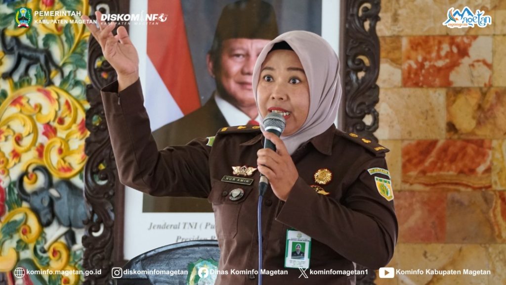 Sedangkan pemateri dari Kejaksaan Magetan, Nur Amin, S.H. M. Hum., menjelaskan mengenai kasus pidana yang pernah terjadi di kalangan guru dan tenaga pendidik, salah satunya pungutan.