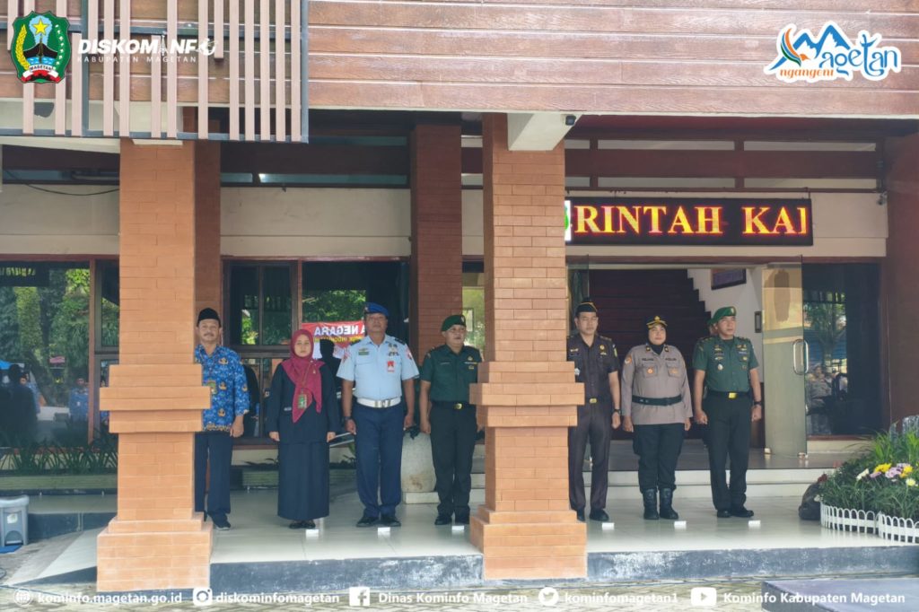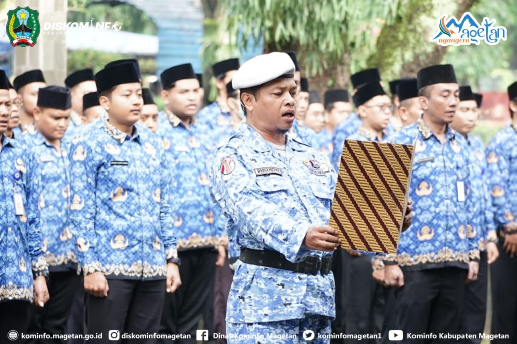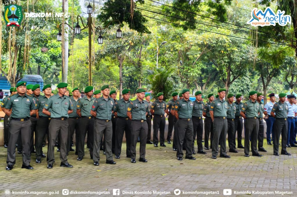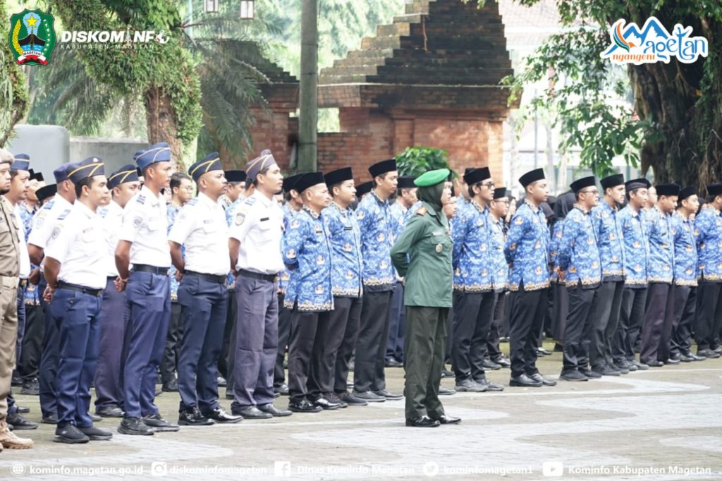 Bertindak sebagai inspektur upacara Wakil Bupati Magetan Suyatni Priasmoro, S.H., M.H., Dalam amanatnya Wakil Bupati Magetan menegaskan bahwa landasan pokok kita bela negara adalah cinta tanah air dalam bentuk perbuatan baik semisal cinta produk dalam negeri.
