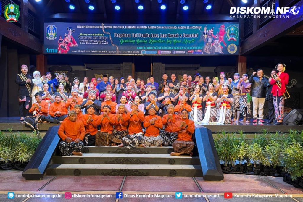 Badan Penghubung Daerah Propinsi Jawa Timur berkolaborasi dengan Pemerintah Kabupaten Magetan gelar perhelatan “Gelar Seni Budaya Daerah (GSBD) ” dan Pameran Produk Unggulan Kabupaten Magetan di Anjungan Jawa Timur Taman Mini Indonesia Indah Jakarta, Sabtu malam (17/4/26). Agenda strategis ini dirancang sebagai sarana promosi berkelanjutan untuk memperkenalkan kekayaan seni, budaya, serta potensi UMKM, dan ekonomi kreatif Magetan kepada khalayak luas.