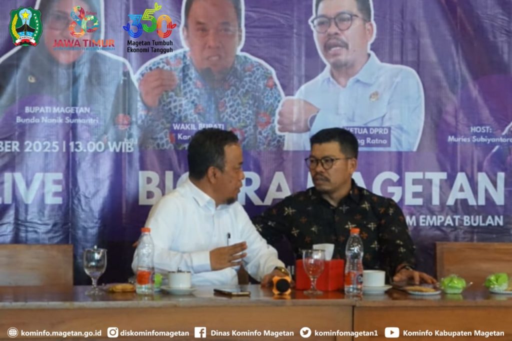 Sekitar empat bulan sejak Bupati dan Wakil Bupati Magetan periode 2025–2030 dilantik pada Mei 2025, pelaksanaan beberapa program menjadi konsentrasi Pemerintah Kabupaten Magetan hingga saat ini. Hal ini disampaikan Wakil Bupati Magetan, Suyatni Priasmoro, saat menjadi narasumber acara Diskusi “Bicara Magetan, Magetan Dalam Empat Bulan” yang digelar oleh Asosiasi Perusahaan Media Magetan (APMM) dalam rangka memperingati ulang tahun APMM yang ke-3, Selasa (15/10/2025).