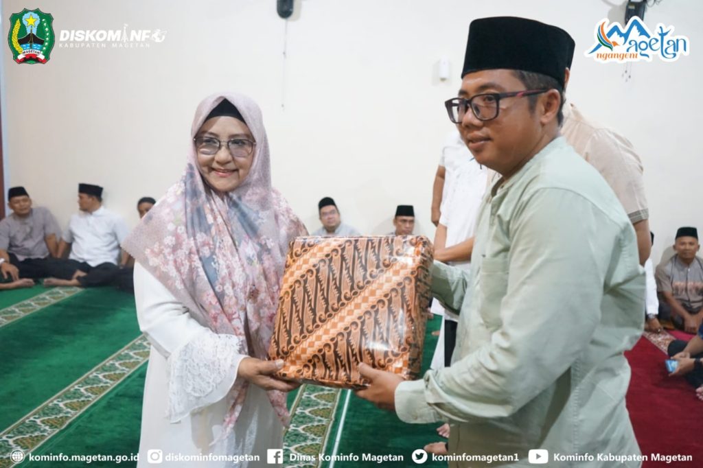 Di kesempatan ini, Bupati selain menyerahkan bantuan kepada takmir masjid juga menyerahkan zakat dari Pemerintah Kabupaten Magetan secara simbolis kepada 5 camat eks-Karesidenan Gorang-gareng.