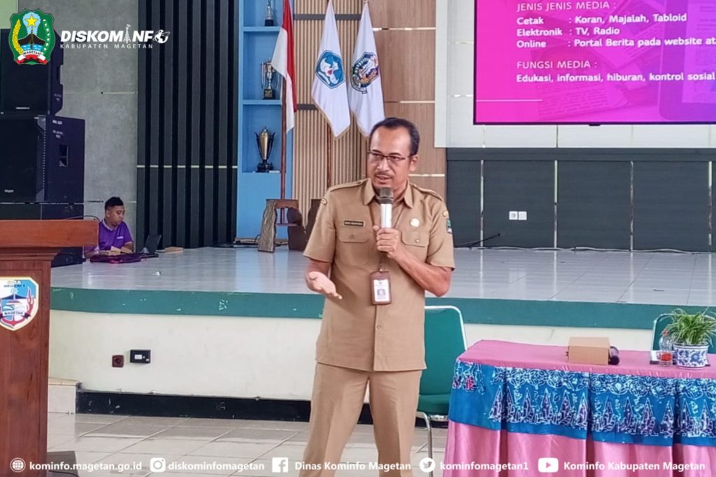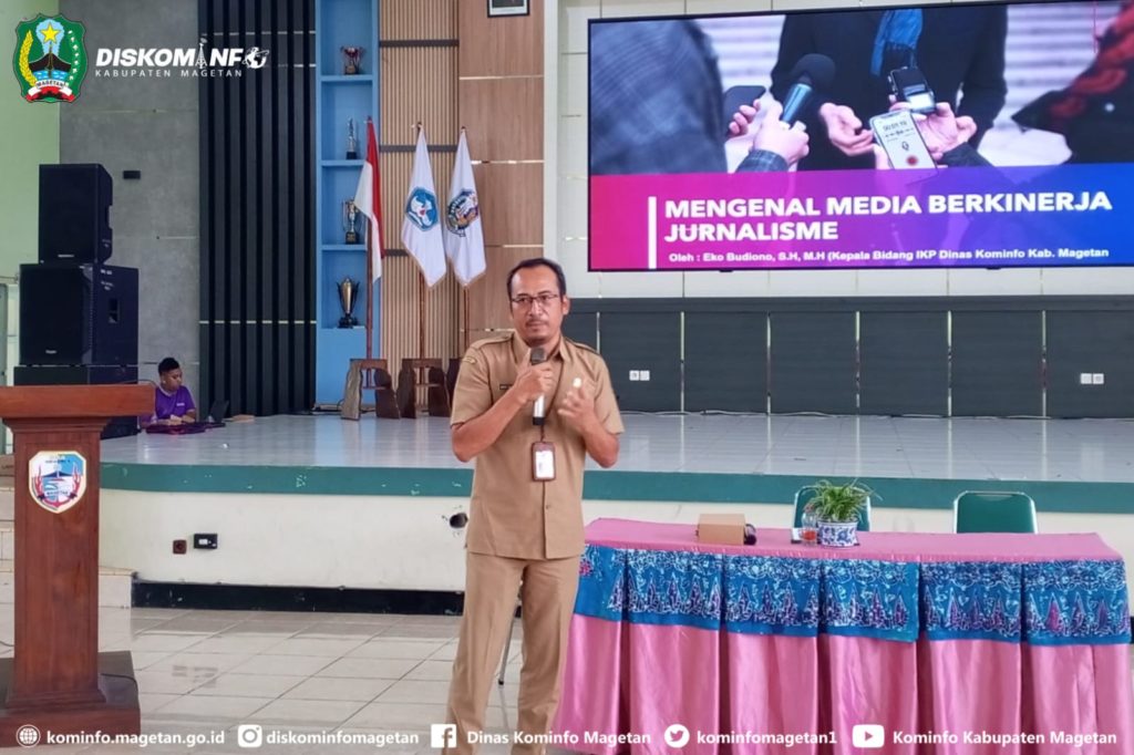 Kepala Bidang IKP Dinas Kominfo Magetan, Eko Budiono selaku narasumber dari Dinas Kominfo Magetan dalam kesempatan tersebut menjelaskan bagaimana keberadaan perusahaan pers atau media kemudian memliki peran yang sangat penting dalam penyebaran informasi di era digital, terutama di tengah banjir informasi dan tren penggunaan media sosial.