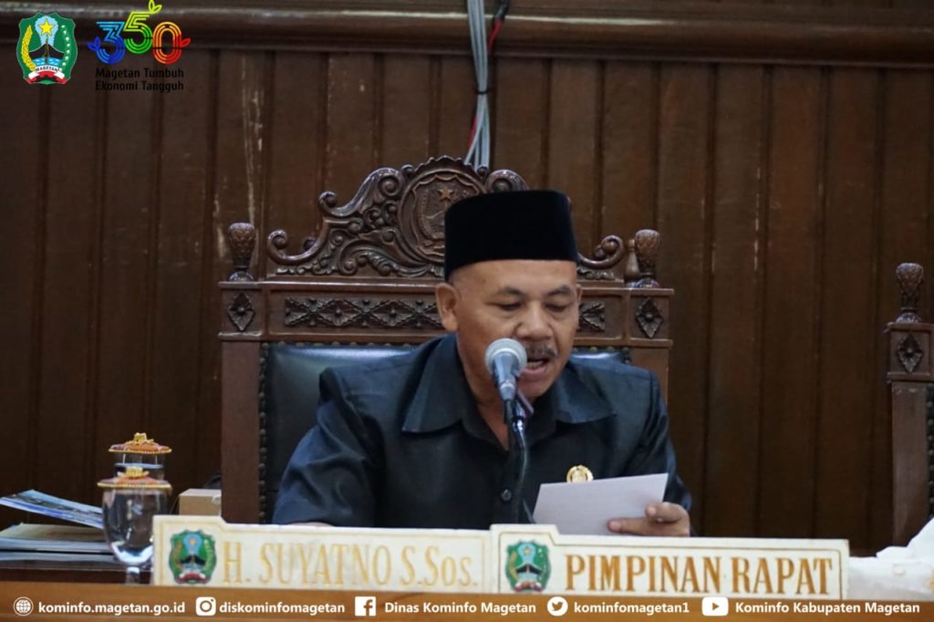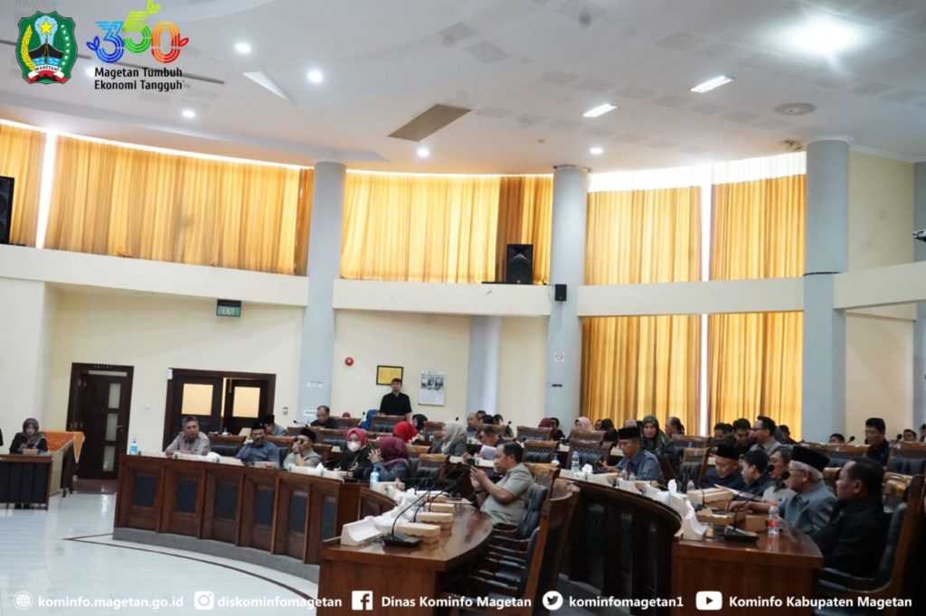 Rapat dipimpin oleh Wakil Ketua I DPRD Magetan, Suyatno, serta dihadiri Bupati Magetan Hj. Nanik Sumantri, unsur Forkopimda, Kepala Organisasi Perangkat Daerah (OPD), pimpinan partai politik, insan pers, dan tamu undangan lainnya.