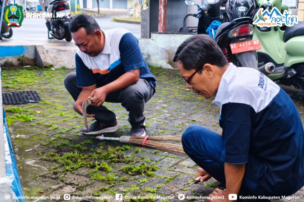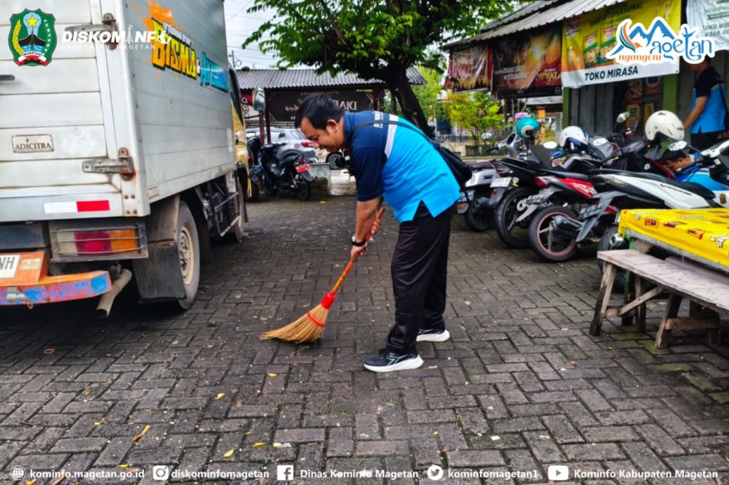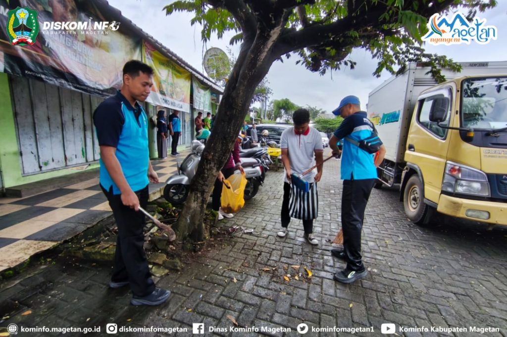 Dalam hal tersebut Dinas Komunikasi dan Informatika Kabupaten Magetan resik-resik di sekitaran Timur Pasar Sayur Magetan.