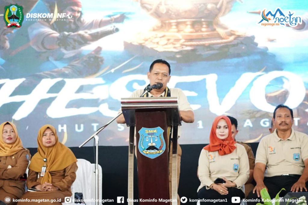 Sekretaris Daerah Kabupaten Magetan, Drs. Welly Kristianto, M.Si, mewakili Bupati Magetan, dalam sambutannya menyampaikan ucapan selamat atas peringatan HUT ke-37 SMKN 1 Magetan. “Saya ucapkan selamat tahun ke-37 kepada SMK Negeri 1 Magetan. Semoga sekolah ini terus menjadi kebanggaan bagi masyarakat Magetan, serta mampu terus menghasilkan generasi muda yang cerdas, berkarakter, berinovasi, dan berprestasi,” pungkasnya.(Diskominfo:syrl / fa2 /