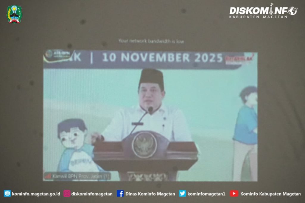 Gerakan Masyarakat Pemasangan Tanda Batas (Gemapatas) dan Gerakan Masyarakat Pengumpulan Data Yuridis (Gemapuldadis) se Wilayah Provinsi Jawa Timur. Dalam hal ini ATR/BPN Jatim menggelar zoom di Kab. Gresik yang diikuti Kabupaten/Kota Se-Jawa Timur, pun Kabupaten Magetan mengikuti zoom di Kantor Desa Tanjungsepreh Kec. Maospati. Senin. (10/11/2025). Diikuti Bupati Magetan beserta Forkopimda, Kanwil BPN Jatim, OPD terkait, ATR/BPN Magetan, Camat se Magetan, Kades Tanjungsepreh.
