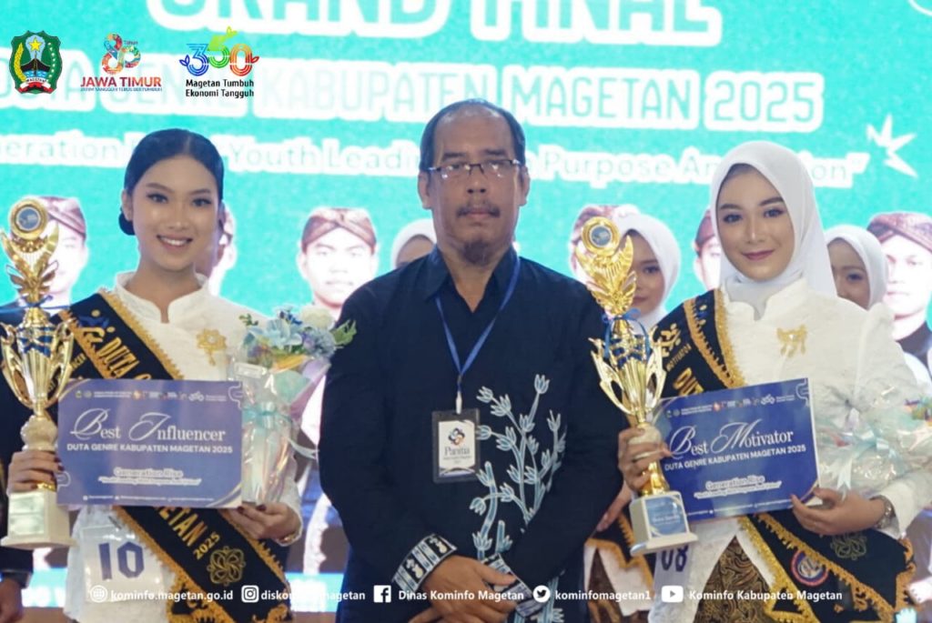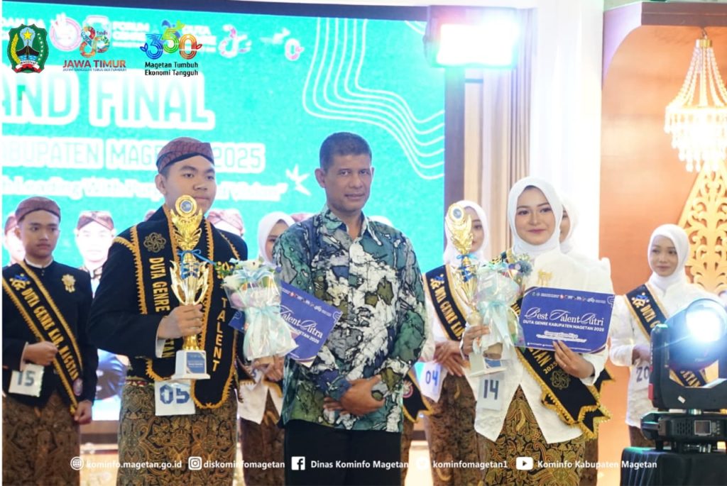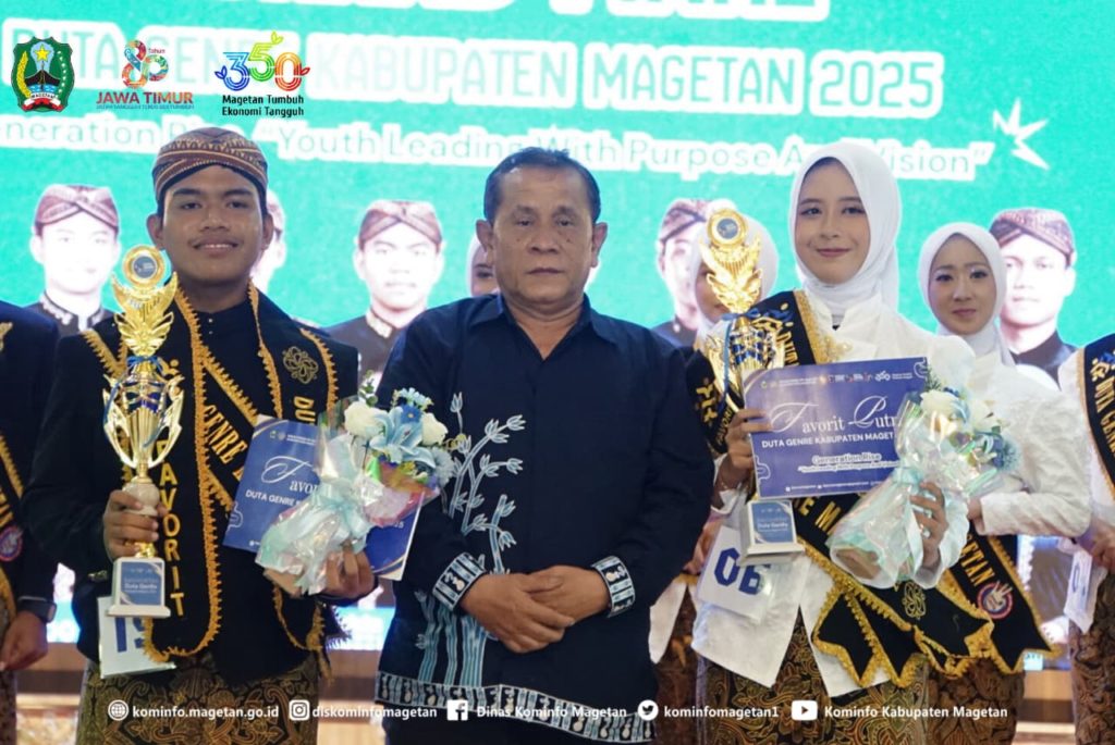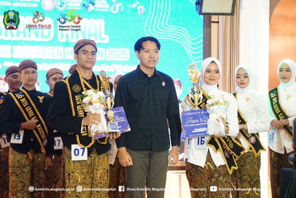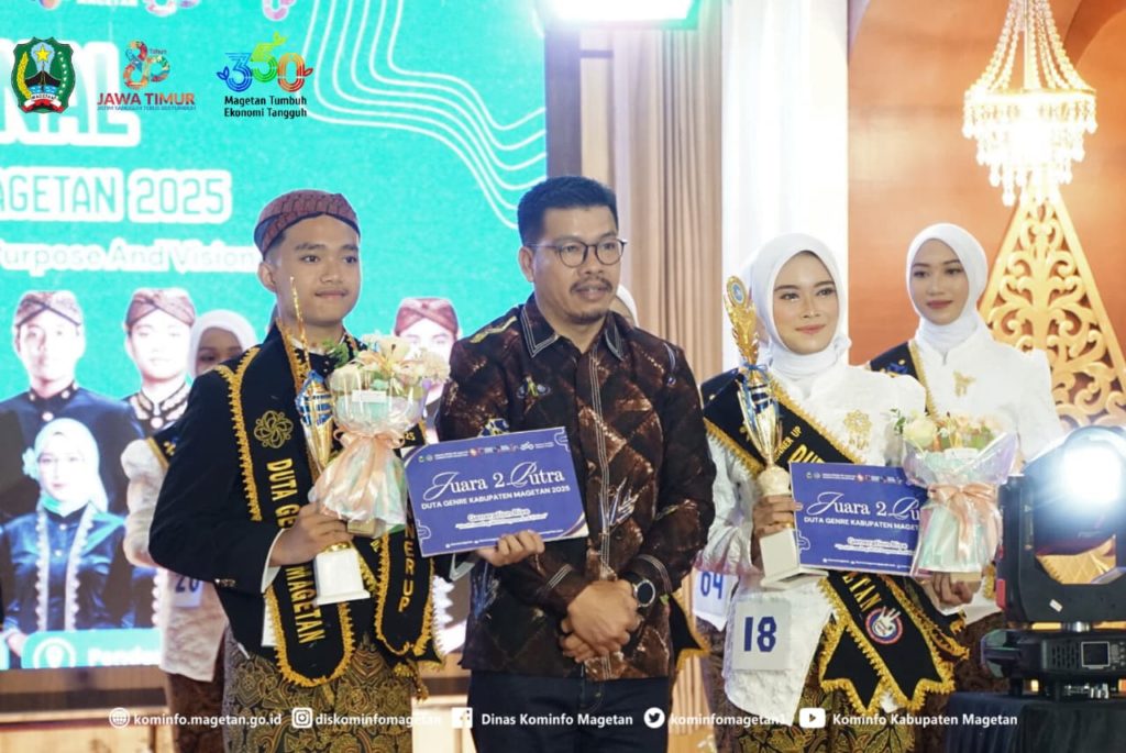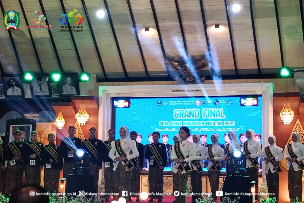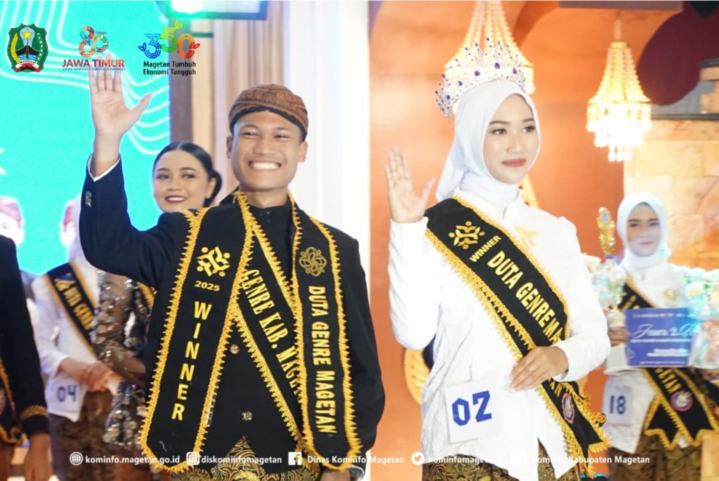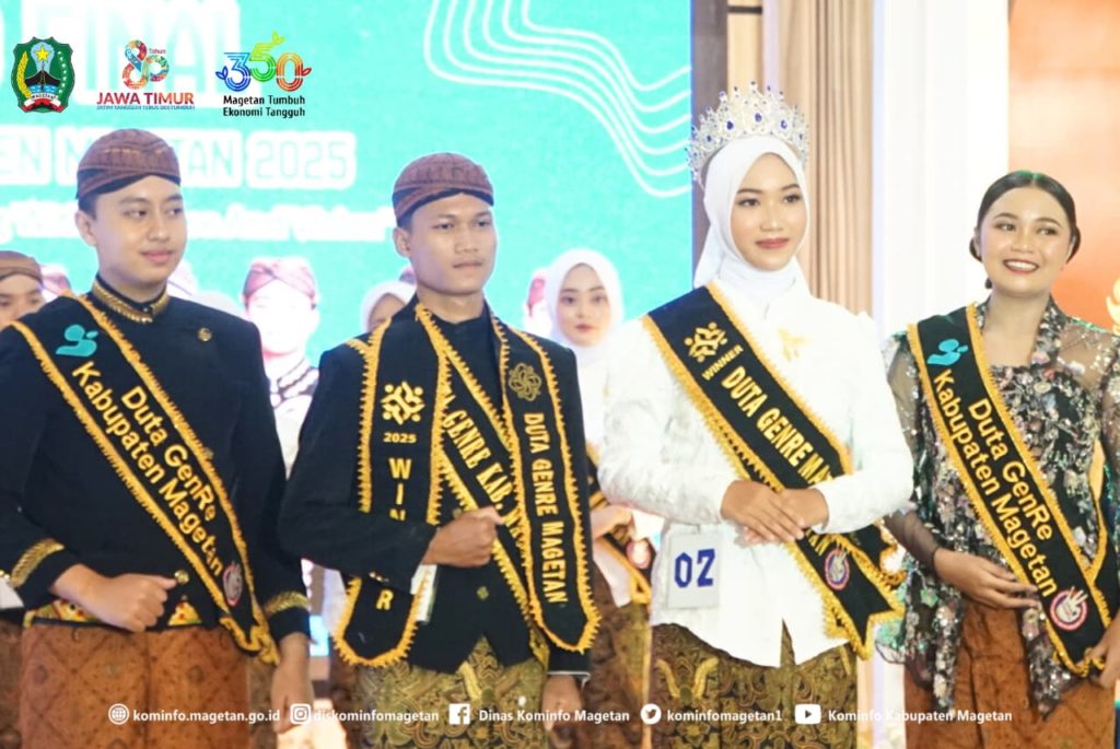 Malam puncak Pemilihan Duta GenRe Magetan 2025 berlangsung meriah dengan penentuan dua remaja terbaik yang berhasil menyisihkan para finalis lainnya. Agus Nasikh Mu’adz Annashihi asal Desa Driyorejo dan Aulia Sahara Zahwa dari Desa Purworejo, Kecamatan Nguntoronadi, resmi dinobatkan sebagai Duta GenRe Magetan 2025.