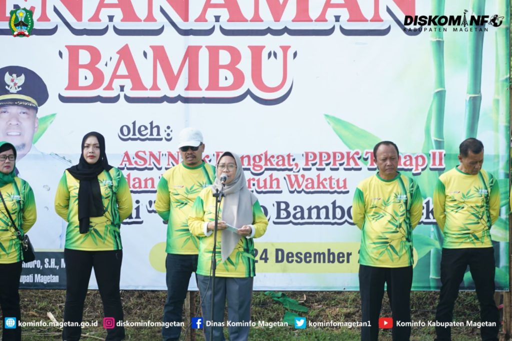 Asisten Administrasi Umum Suci Lestari, S.H, mengatakan bahwa untuk mewujudkan Magetan yang bersih, sehat dan hijau dibutuhkan peran aktif dari semua pihak. Salah satunya dengan gerakan penanaman pohon yang dapat dilaksanakan secara masif dan berkelanjutan. Penanaman bambu dipilih sebagai langkah strategis dalam mengalami dampak perubahan iklim mengingat tanaman bambu memiliki berbagai manfaat ekologis. “Selamat bergabung sebagai bagian dari ASN Kabupaten Magetan, kami berharap dengan semangat baru ini, saudara dapat mengemban amanah negara dengan penuh tanggungjawab dan profesional,” ucapnya.(Diskominfo:wan / fa2 / IKP1)