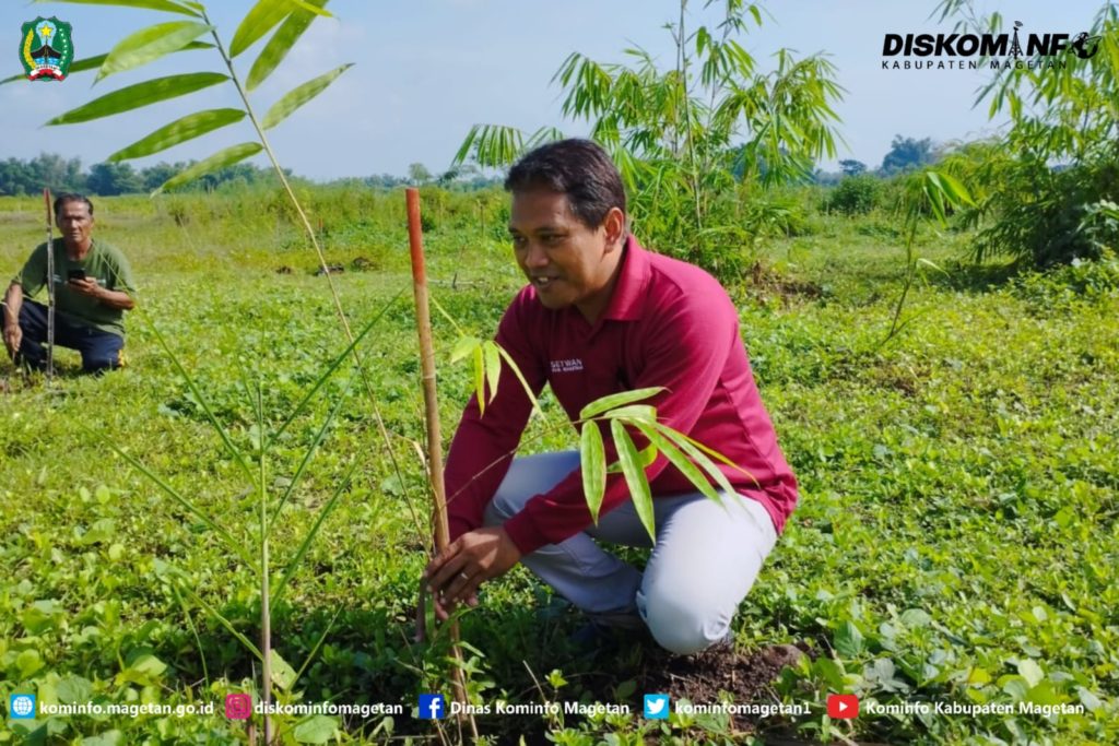 Kepala Dinas Lingkungan Hidup (DLH) Saif Muchlissun menyampaikan, kegiatan ini dilaksanakan sebagai wujud komitmen Pemerintah Magetan dalam menjaga kelestarian lingkungan hidup. Hari ini dilaksanakan penanaman bambu ribuan bibit dari berbagai jenis bambu sesuai masterplan di eco bambu park. “Melalui si hijau eco bambu park semakin berfungsi sebagai kawasan konserfasi, ruang terbuka hijau tematik, sekaligus media edukasi lingkungan bagi masyarakat Kabupaten Magetan,” jelasnya.