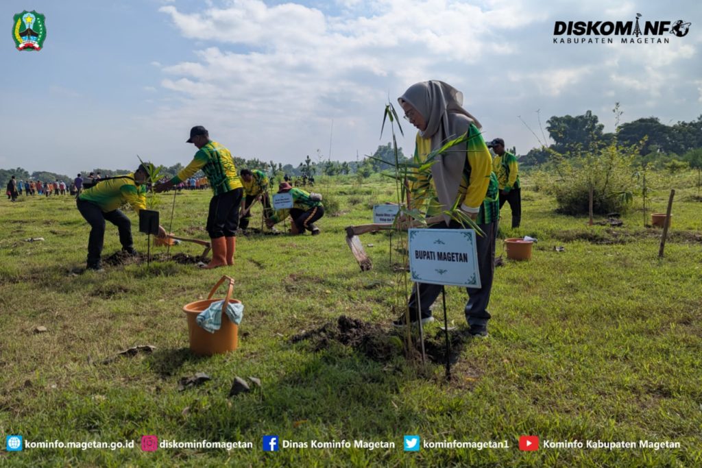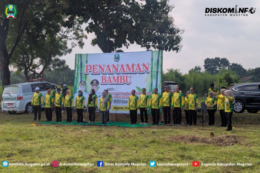 Sebagai wujud komitmen dalam pelestarian lingkungan dan peningkatan kualitas ruang terbuka hijau, Pemerintah Kabupaten Magetan melalui Dinas Lingkungan Hidup dan Pangan melaksanakan kegiatan Penanaman Bambu yang dilaksanakan di Eco Bamboo Park. Rabu (24/2025). Sebanyak 1.540 peserta, yang terdiri dari 231 ASN Naik Pangkat, 190 PPPK Tahap II, serta 1.119 PPPK Paruh Waktu. Serta dihadiri Asisten Administrasi Umum, Ketua DPRD Magetan, Kepala OPD, Ketua Komisi D Magetan.
