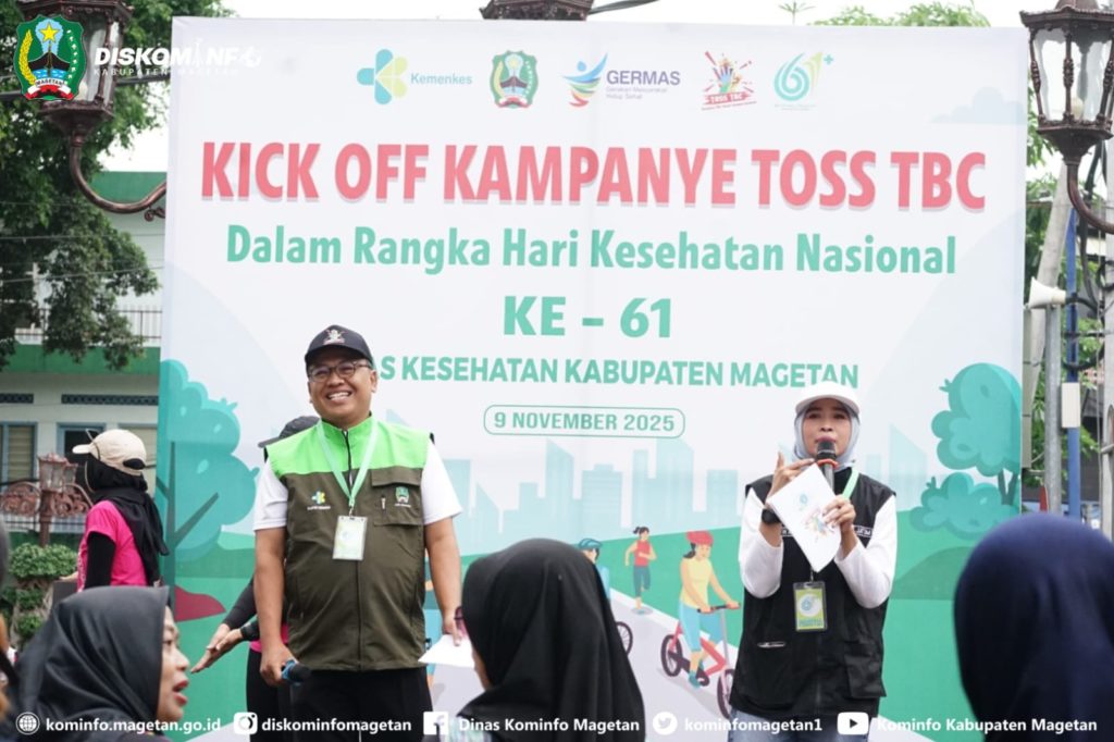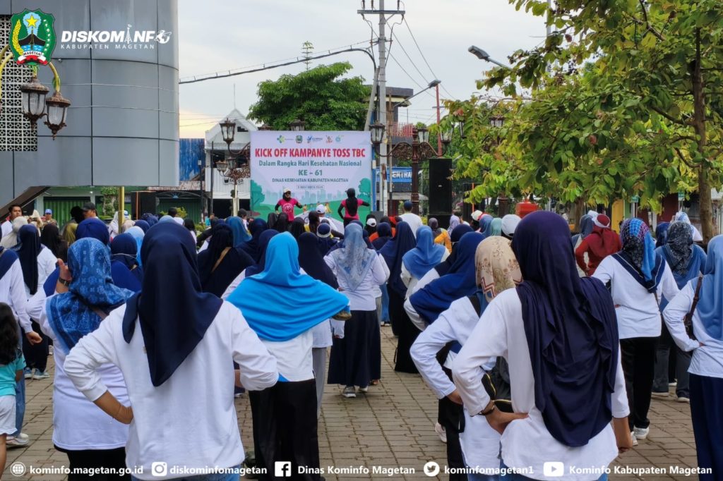 Peringatan Hari Kesehatan Nasional ke 61 di Kabupaten Magetan ditandai dengan Kick Off Kampanye TOSS-TBC yang bertempat di Parkir Timur Pasar Baru Magetan, Minggu (09/11).
