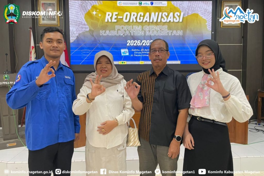 Belasan remaja terpilih dikukuhkan sebagai Insan Generasi Berencana (GenRe) Kabupaten Magetan masa bakti 2026-2028 yang berlangsung di ruang pertemuan Dinas Pengendalian Penduduk, Keluarga Berencana dan Pemberdayaan Perempuan, Perlindungan Anak (PPKB PP dan PA) Magetan, Sabtu (25/4).