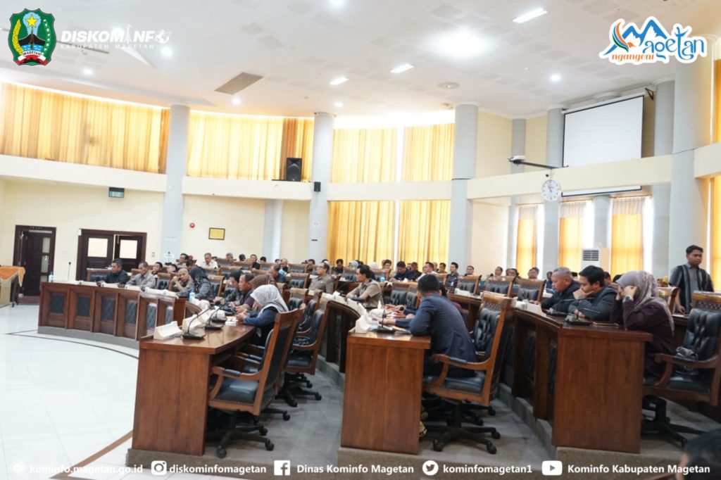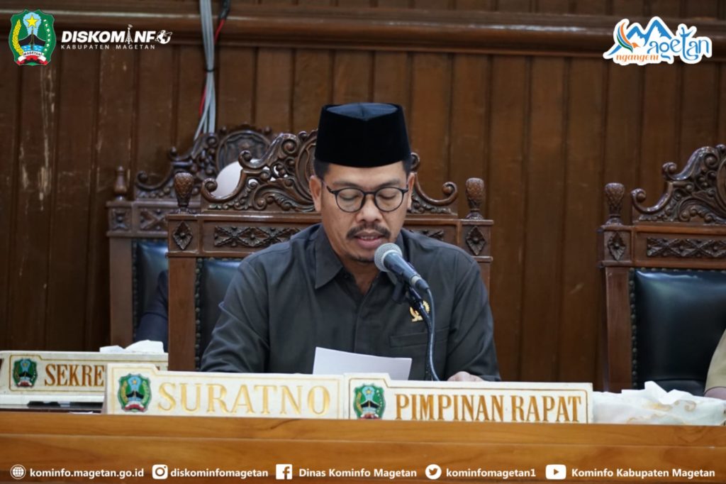 Rapat paripurna kali ini dipimpin Ketua DPRD Magetan Suratno, dan dihadiri Sekretaris Daerah, jajaran Forkopimda, kepala OPD, anggota DPRD Kabupaten Magetan serta tamu undangan lainnya.