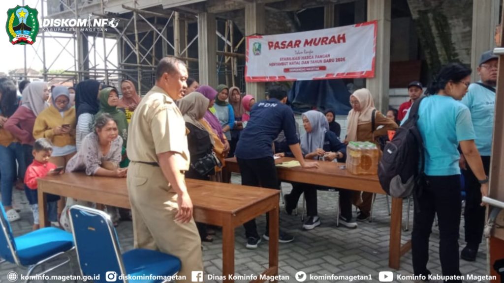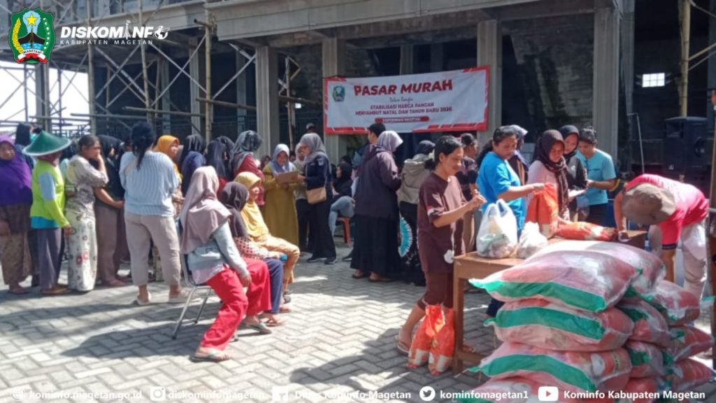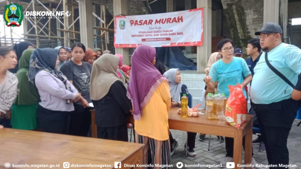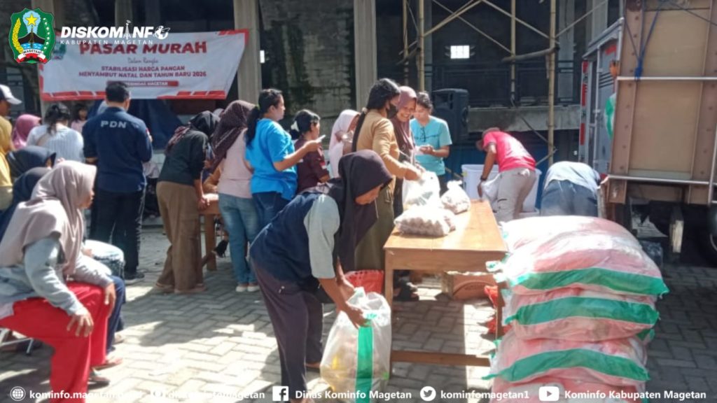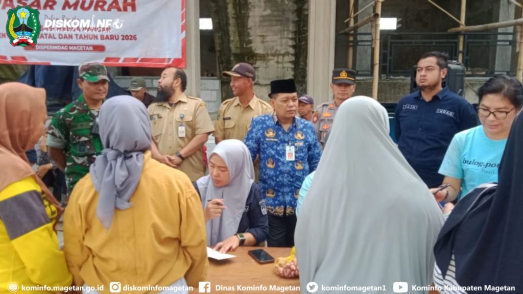 Jelang Hari Natal dan Tahun Baru 2026, Pemerintah Daerah melalui Dinas Perindustrian dan Perdagangan bekerjasama Bulog cabang Ponorogo, hari ini gelar pasar murah di halaman Bumdes Desa Bulugunung Kecamatan Plaosan, (16/12/25).