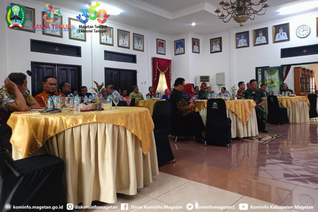Pemerintah Kabupaten Magetan mengikuti Rapat Koordinasi Koperasi Desa/Kelurahan Merah Putih (KDKMP) yang digelar secara daring melalui Zoom Meeting pada Jumat (31/10/2025). Kegiatan berlangsung di Ruang Jamuan Pendopo Surya Graha dan diikuti oleh Bupati Magetan, Sekretaris Daerah Kabupaten Magetan, jajaran Kodim, para Camat se-Kabupaten Magetan, serta Dinas Koperasi dan UMKM.