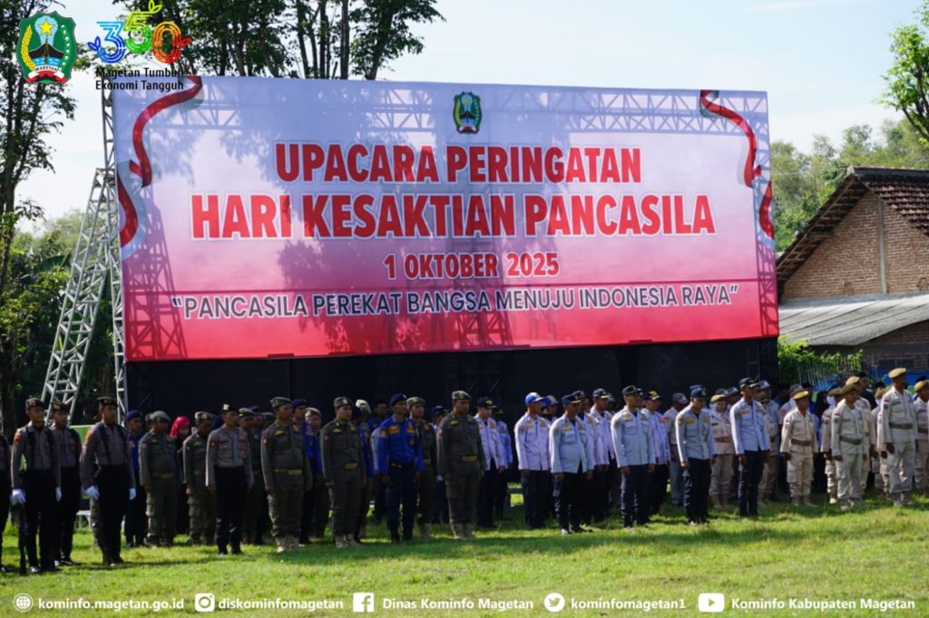 Memperingati Hari Kesaktian Pancasila, Pemerintah Kabupaten Magetan menggelar upacara di Monumen Soco, Desa Soco, Kecamatan Bendo, Magetan, pada Selasa, 1 Oktober 2025. Upacara berjalan khidmad dengan mengusung tema nasional “Pancasila Perekat Bangsa Menuju Indonesia Raya.”