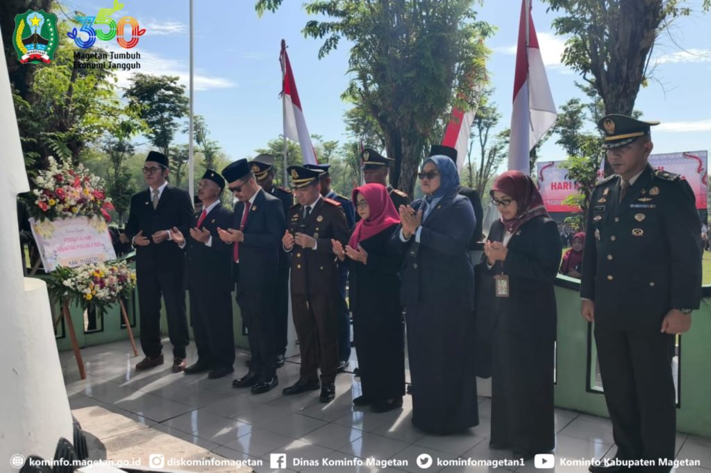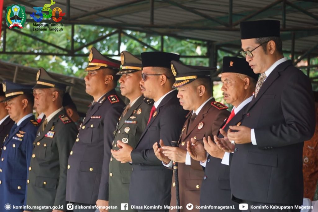 Kekhidmatan upacara semakin terasa saat peserta upacara secara serentak mengheningkan cipta untuk mengenang para pahlawan revolusi dan korban keganasan ideologi anti-Pancasila. Dan sebagai wujud kesetiaan terhadap Pancasila dibacakan pula Ikrar Hari Kesaktian Pancasila tahun 2025 yang dibacakan oleh Ketua DPRD Magetan, Suratno
