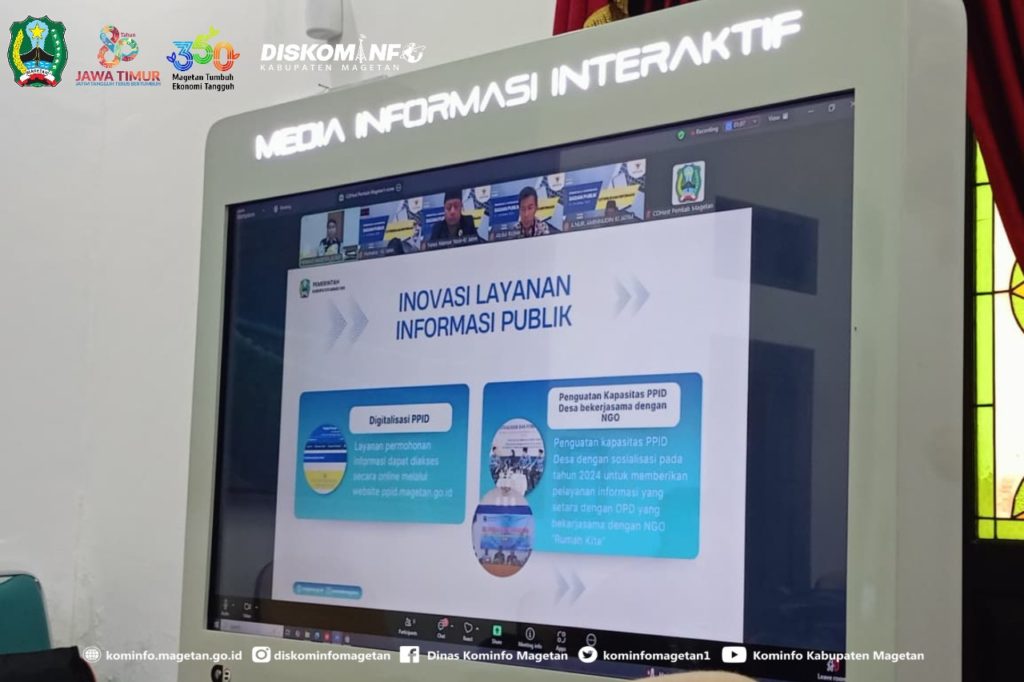 Salah satu inovasi dalam pelayanan informasi publik adalah sinergi dan kolaborasi PPID Utama Kabupaten Magetan dengan Non Governmental Organization (NGO) melalui kegiatan Sosialisasi PPID Desa dalam satu tahun terakhir. Melalui kolaborasi tersebut, pemerintah daerah berupaya memperluas jangkauan edukasi keterbukaan informasi publik hingga ke tingkat desa yang sejalan dengan amanat Undang-Undang Nomor 14 tahun 2008 tentang Keterbukaan Informasi Publik (KIP).