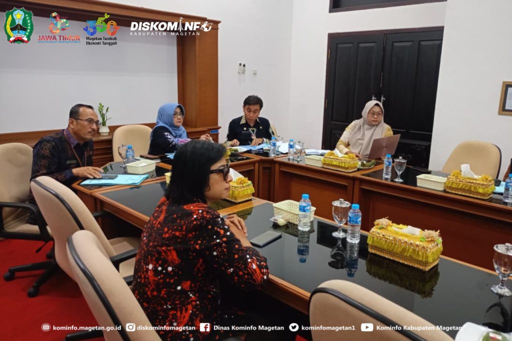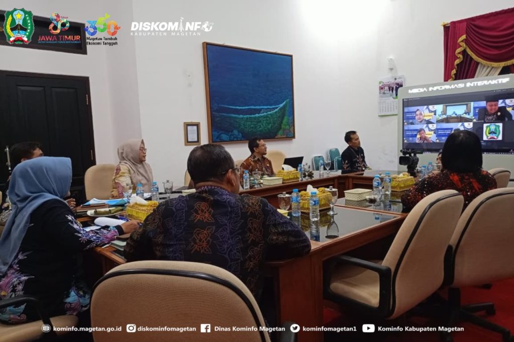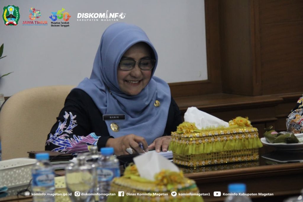 Bupati Magetan Hj. Nanik Sumantri, M.Pd, menegaskan komitmen Pemerintah Kabupaten Magetan dalam mewujudkan tata kelola pemerintahan yang transparan dan partisipatif saat mengikuti tahapan wawancara Monitoring dan Evaluasi (Monev) Keterbukaan Informasi Publik Tahun 2025 yang digelar oleh Komisi Informasi Provinsi Jawa Timur, Kamis (23/10), secara daring.
