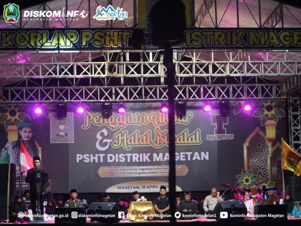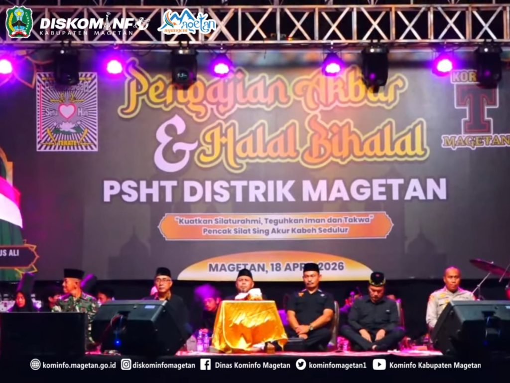 Dalam rangka mempererat tali persaudaraan dan meningkatkan keimanan, Persaudaraan Setia Hati Terate (PSHT) Distrik Magetan menggelar kegiatan Pengajian Akbar dan Halal Bihalal di GOR Ki Mageti, Sabtu (18/04/2026).