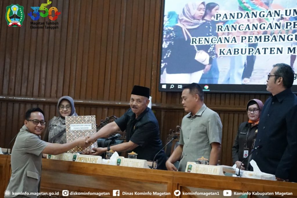 Sementara itu, Fraksi Partai NasDem memberikan apresiasi atas penyusunan RPJMD yang dinilai sistematis dan sesuai aturan, namun meminta agar visi “Magetan Nyaman, Maju, dan Berkelanjutan” benar-benar diwujudkan dalam langkah nyata dan bukan sekadar normatif.
