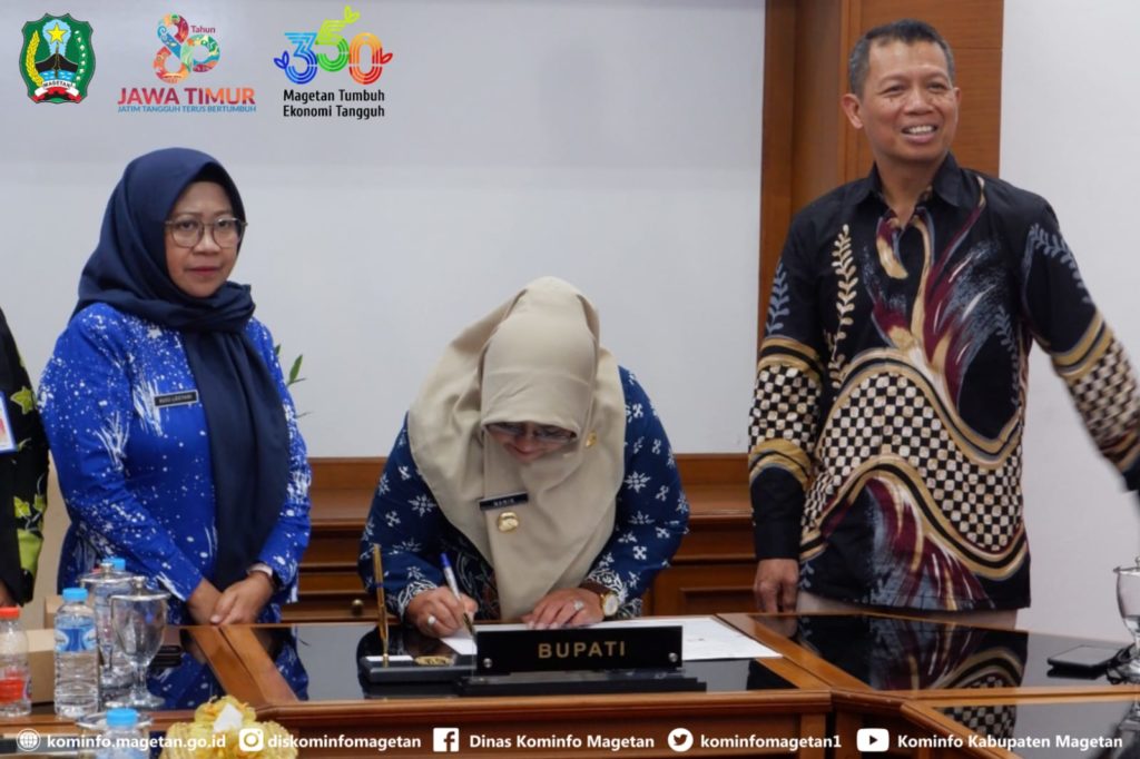 Penandatanganan yang diikuti oleh 109 pemerintah daerah dari 6 provinsi, 71 kabupaten, dan 32 kota ini menjadi langkah penting dalam upaya optimalisasi penerimaan pajak serta memperkuat kemandirian fiskal daerah. Kabupaten Magetan menjadi salah satu peserta aktif yang menandatangani perjanjian tersebut, dengan pelaksanaan kegiatan terpusat di Ruang Rapat Bupati Magetan, dipimpin langsung oleh Bupati Magetan Hj. Nanik Sumantri.