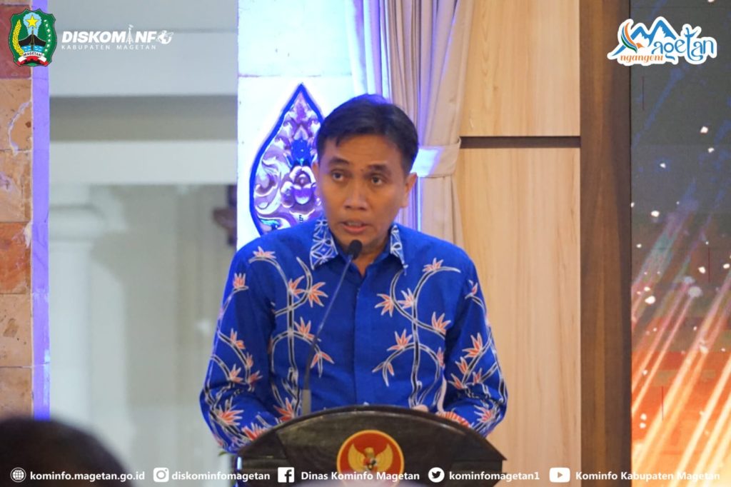 Wakil Bupati Magetan Suyatni Priasmoro, S.H., M.H., dalam sambutannya menyampaikan apresiasi dan menyambut baik kegiatan positif Media Awards Tahun 2025